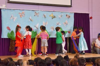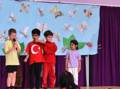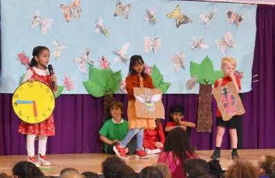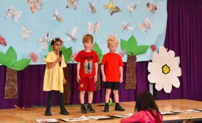 1L delighted the audience on Friday with a very colourful assembly on their recent learning. They went to the Olympic Park to look at the wild flower gardens where they were able to identify lots of different flowering plants and insects in the bug hotels that had been created.