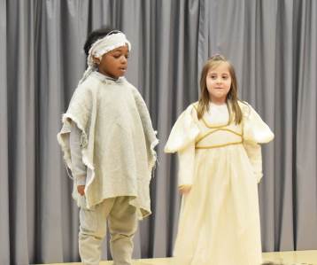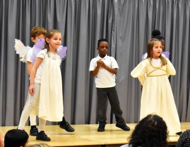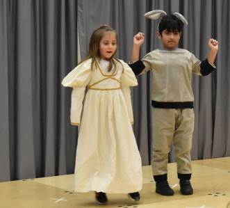 The children shared a story of an Angel who had no wings and how along her journey to Bethlehem she encountered a lamb, donkey and dove who she helped when they got themselves into difficulty. And for her kindness she earned her wings when she reached Bethlehem and met Mary, Joseph and baby Jesus.