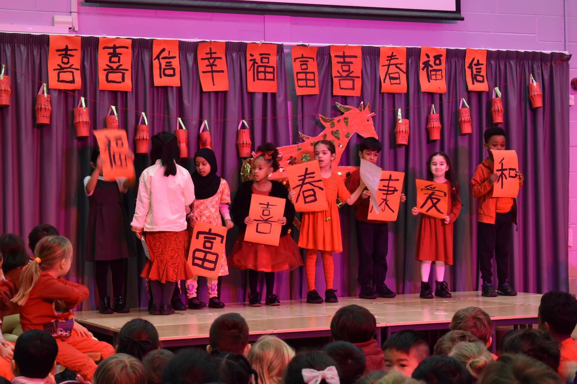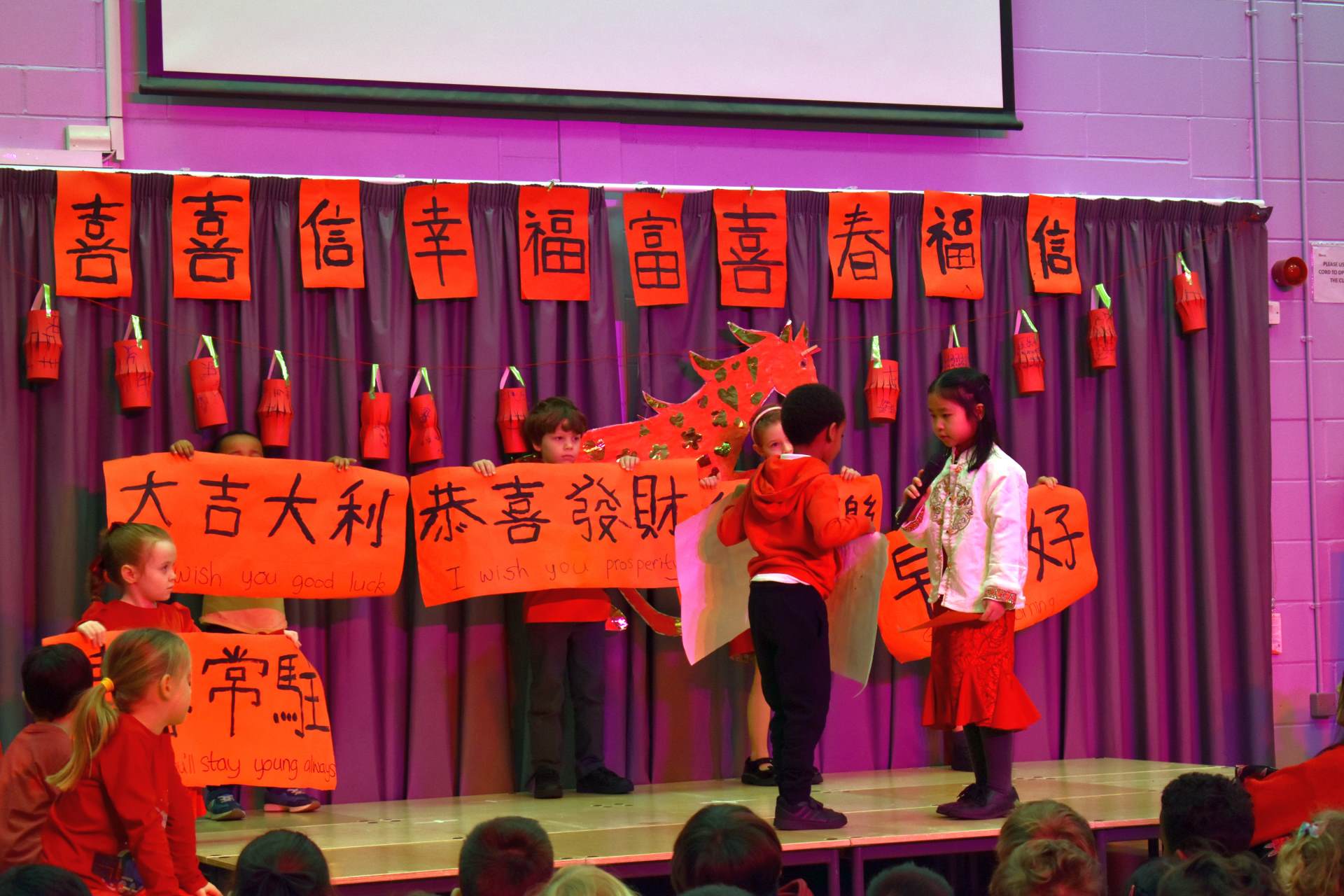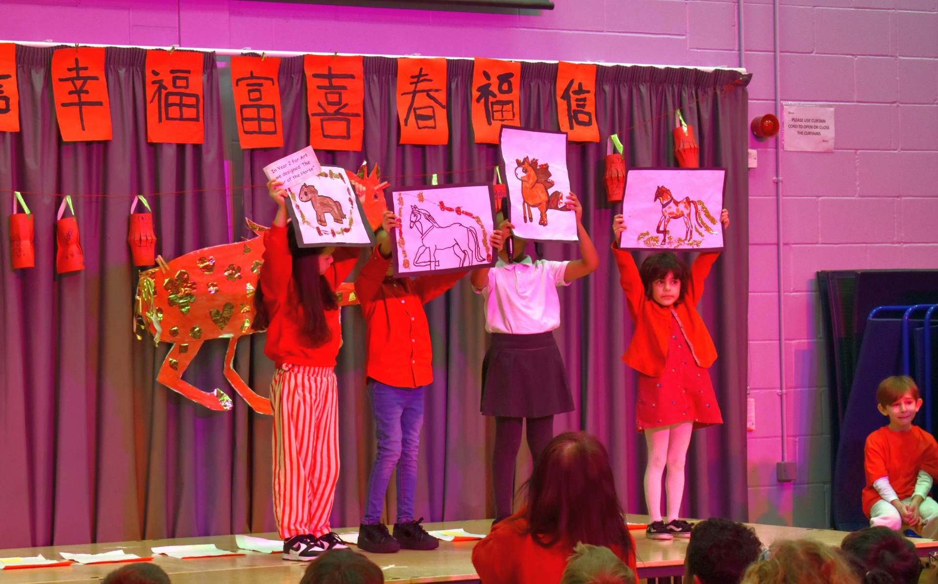On the Friday before half term we were treated to a superb assembly organised and directed by Miss Lee to celebrate the Chinese New Year. This will be the Year of the Horse! To celebrate this, Year 2 did some amazing artwork showing their horses. the children shared some beautifully constructed banners to celebrate the new year with popular phrases such as "I wish you good health" and "I wish you'll stay young always" - which was particularly popular amongst the staff. Reception shared the work they had been doing role playing as a Chinese restaurant and sang the Happy New Year song - Gong Hey Fat Choy, which taught us about some of the traditions of the Lunar New Year. Some children shared their names in Chinese and then the RRS Ambassadors showed us how this celebration links to the UNICEF Rights Charter. It was a great way to finish off the half term. Many thanks to the adults that helped organise it; the children who performed and the great number of parents who came to support!