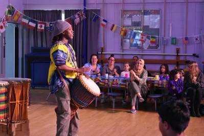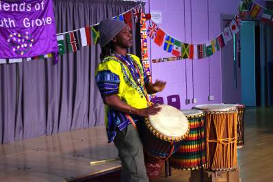 Moving away from dance, we were next entertained by an amazing African Drummer, Seneke from Mbilla Arts who are based at The Crate - he is a Guinness World record holder. He had everyone joining in, up on their feet and dancing. Some children even joining him on the drums in a joyous, riotous display of drumming.African Drumming - INTERNATIONAL EVENING 2026