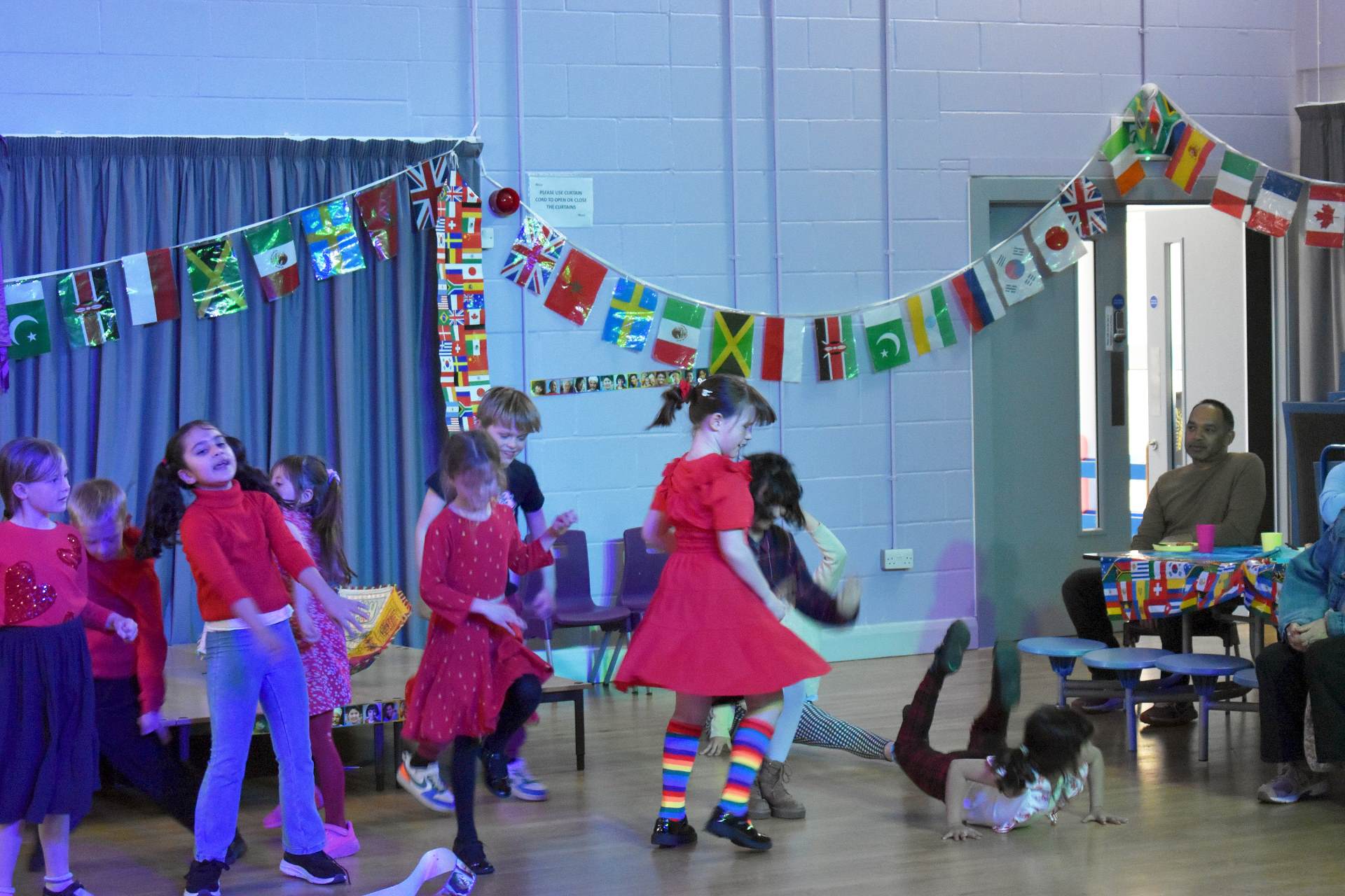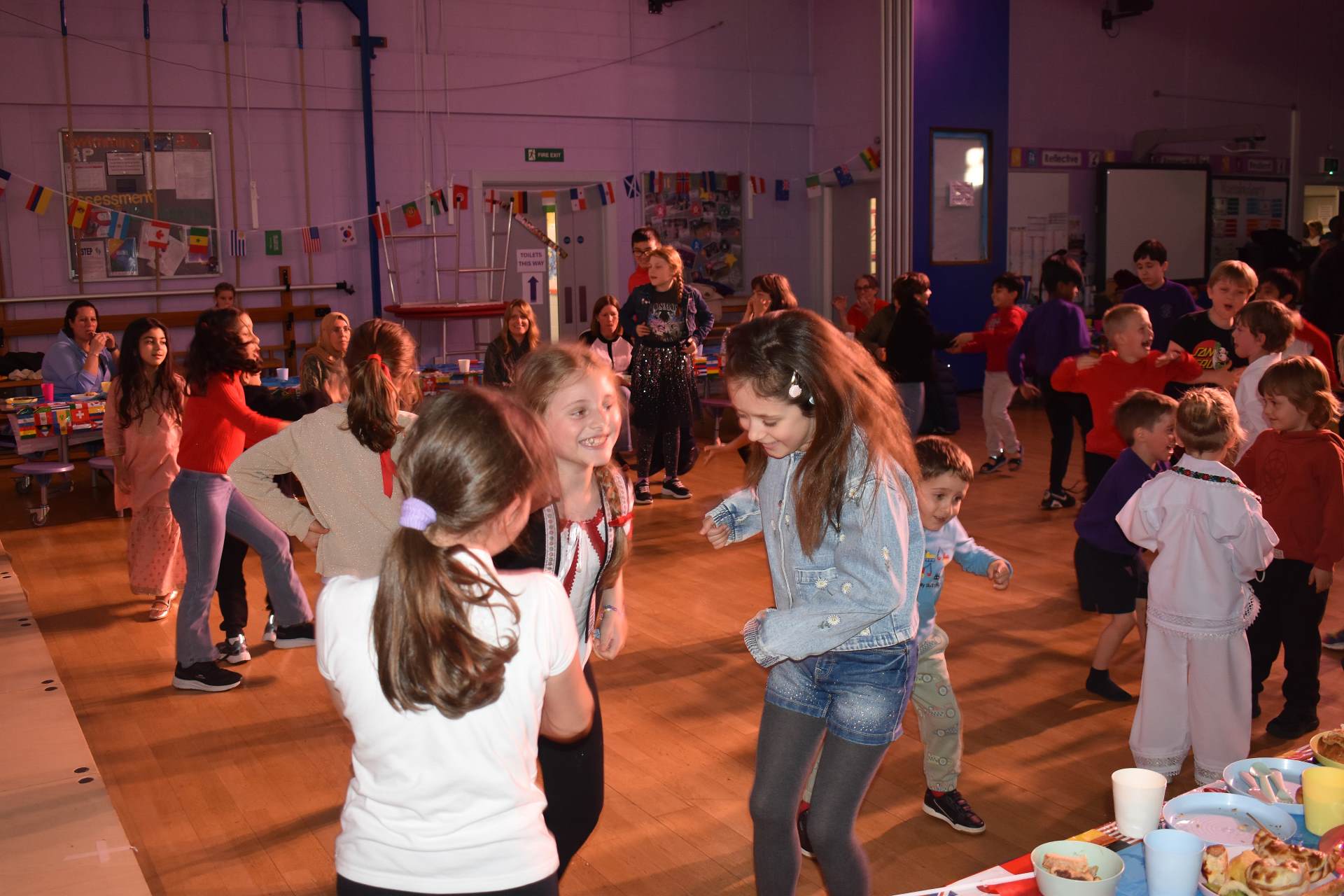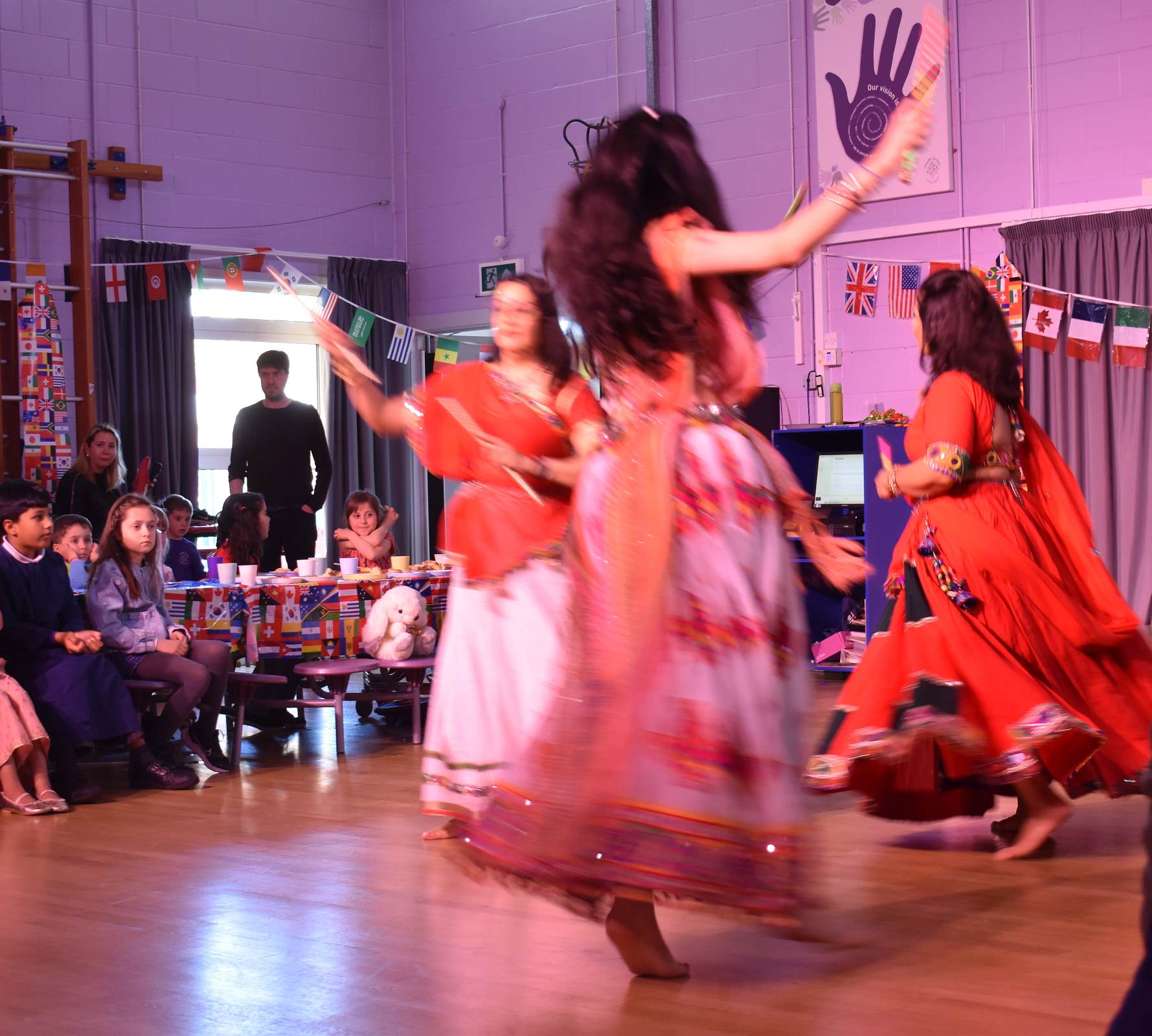 What an evening! Those that attended last Friday to come together and celebrate our international links had a brilliant time. The savoury food that everyone generously contributed looked, smelt and tasted amazing! There really wasn’t much left at all before the entertainment began! The cake and dessert table was equally wonderful and extremely tempting! The hall and dining room were beautifully decorated with flags and tablecloths from across the world.
