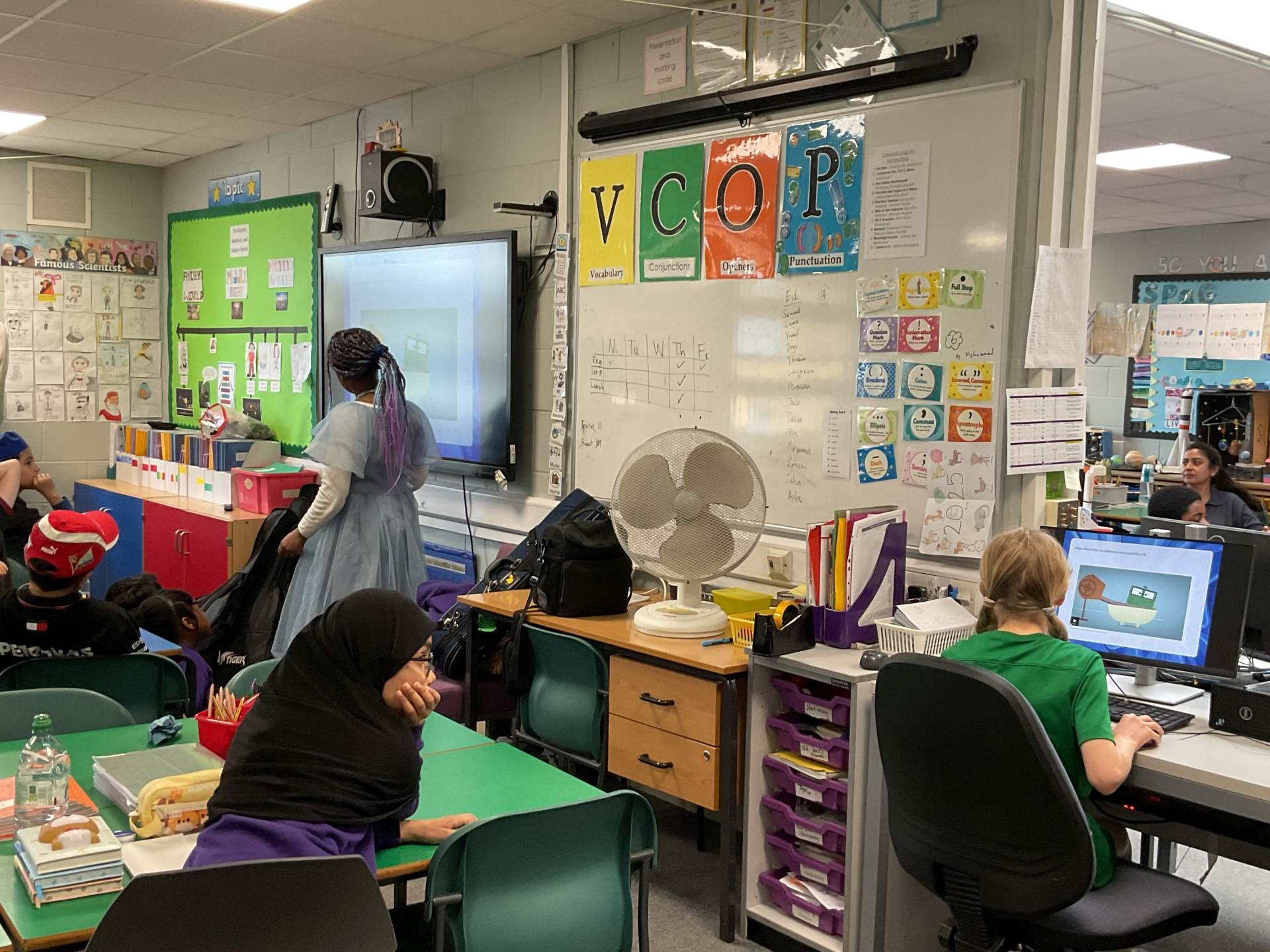 Sarah aka Mrs Grant- The start of the day I did the register just like Mrs Grant does! It was really fun because I've never done the register. Then we went to assembly and I sat on a teachers chair, how amazing was that? During the day I taught a Science lesson and I loved helping others and explaining what to do. After I did the spelling test, it was really fun teaching my friends the words etc. I loved supportig peope during the day and I loved being Mrs Grant!